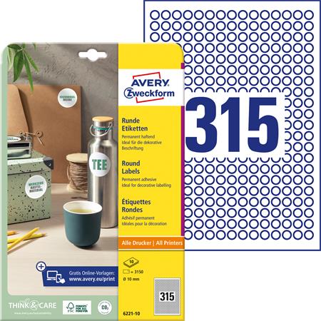 Etikett, univerzális, 10 mm, kör, AVERY ZWECKFORM, 3150 etikett/csomag