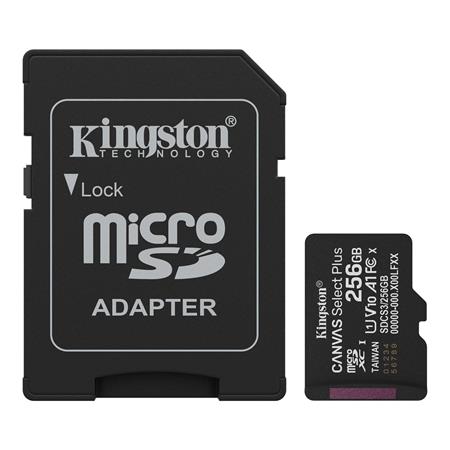 Memóriakártya, microSDXC, 256GB, C10/UHS-I/U1-U3/V10-V30/A1, Gen3, adapter, KINGSTON "Canvas Select Plus"